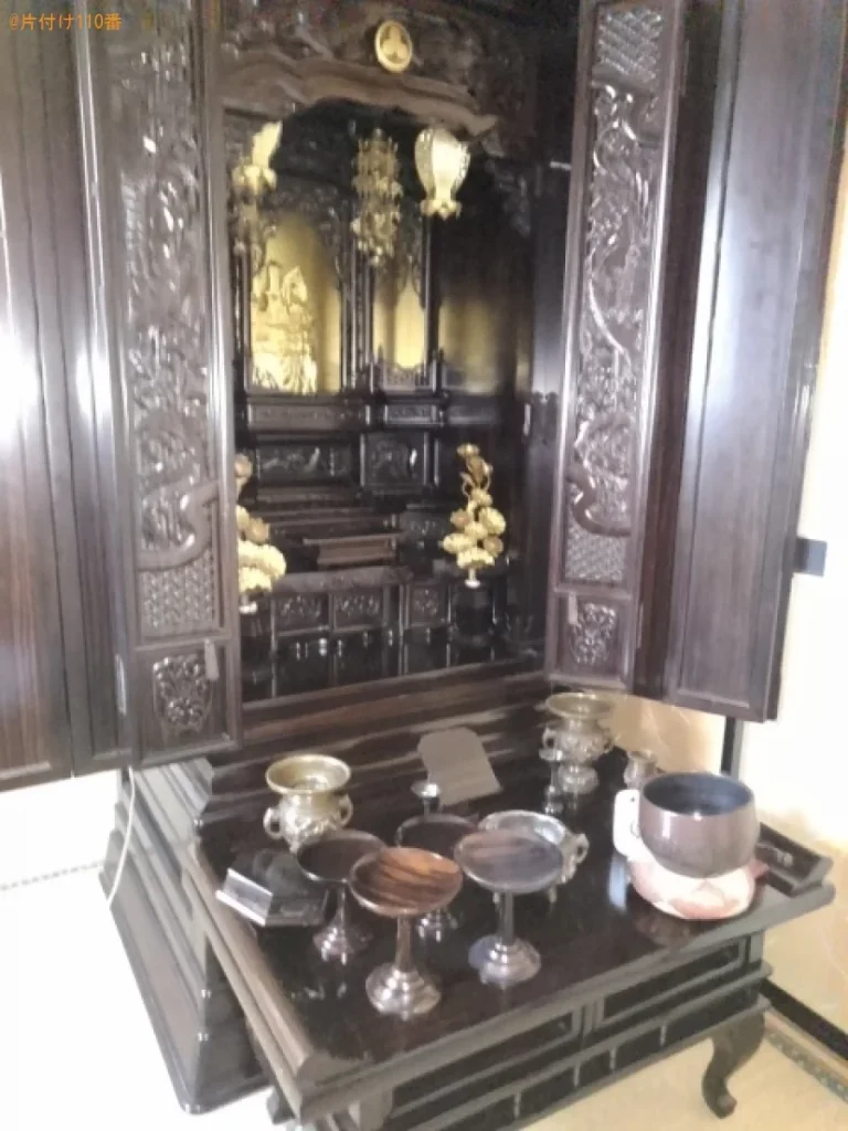 業者を選ぶなら業者紹介サービスが「一番安心な理由」とは? 【富士市広見東本町】仏壇、仏具、タンス、布団等の回収・処分ご依頼 更新日:2026年1月4日 公開日:2022年3月25日 家具・家電の回収事例 タグ タンス 中部 仏壇・仏具 富士市 静岡県 回収場所 富士市広見東本町 回収内容 仏壇、仏具、タンス、布団等 実際の作業料金 68,500円 お客様のご要望 3LDKの部屋の荷物全部回収希望、御霊抜きも希望 オーダーID 787461 この度はご依頼いただき、ありがとうございました。 即日お片付けサービス 業者を選ぶなら「業者紹介サービス」が一番安心です。 すぐに片付けをしてほしい!でもどこに相談してもすぐに対応してくれない…。初めての業者選びだからどこに相談すれば失敗しないか?ネットで検索したら業者にボッタクられたという記事を見た…。など、不用品回収業者選びについてお悩みではありませんか? 結論から書きますが、片付け・不用品回収業者を選ぶなら「業者紹介サービス」を選ぶことをオススメします。業者紹介サービスでも「片付け110番」が一番。 ご要望を即時解決! 最大1億円の賠償責任保険加入済 トラブルにも仲介 安心保証制度 徹底した加盟店教育制度 お客様限定キャンペーン実施 ご要望を対応、保証もすべて完備しているからです。片付け110番へご依頼頂きました声も合わせてすべてご案内します。 About Auther 片付け110番編集部 関連記事 【福山市駅家町】食器棚、学習机の回収・処分ご依頼 お客様の声【大館市北神明町】冷蔵庫、マットレス付きシングルベッドの回収【福山市神辺町】洗濯機の回収・処分ご依頼 お客様の声【松山市久谷町】マットレス付きシングルベッド、タンス等の回収【弘前市南塘町】収納ケース、一般ごみ等の回収とハウスクリーニング【京都市西京区】ドラム式洗濯機の処分ご依頼 お客様の声 投稿ナビゲーション 【うるま市】衣装ケース、スチールラック、こたつ、ラック等の回収【岐阜市】冷蔵庫、洗濯機、ハンガーラック、電子レンジ等の回収